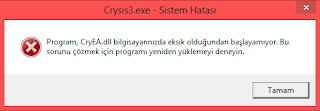 #Etiketler: Crysis 3 CryEA.dll hatası , Crysis 3 CryEA.dll dosyası eksik hatası çözümü , CryEA.dll eksik hatası